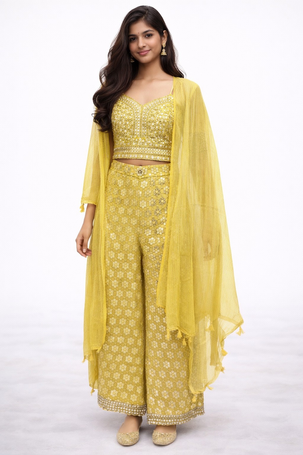 Be the first to review “Haldi yellow handwork choli cartoon blouse with bottom”